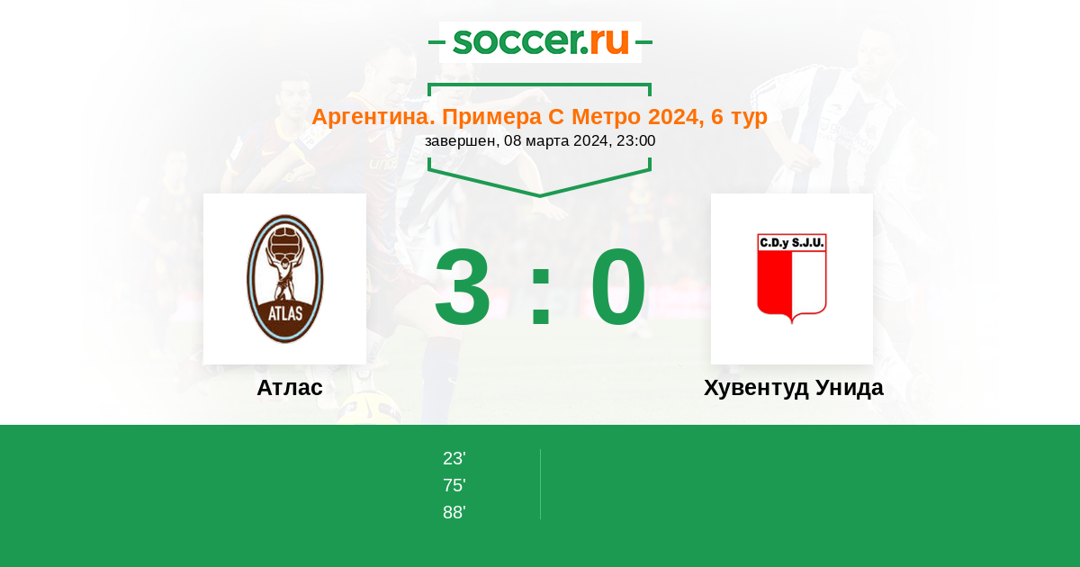 Протокол матча Атлас против Хувентуд Унида