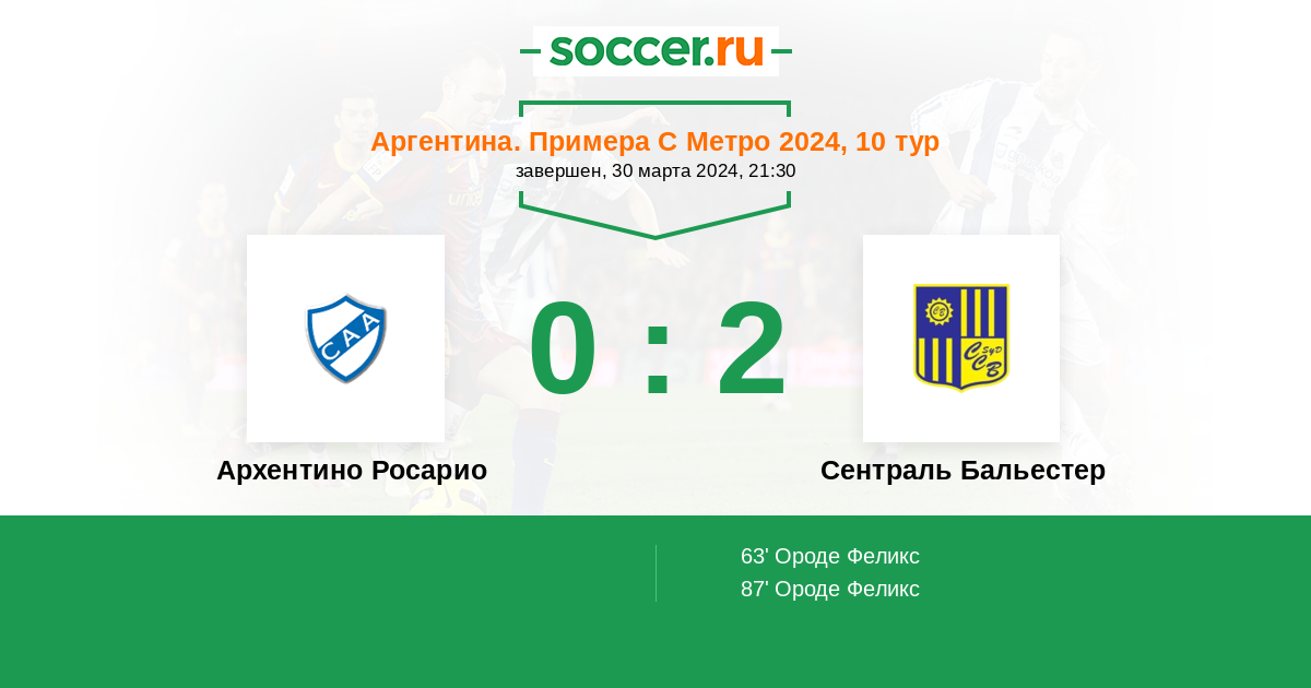 Протокол матча Архентино Росарио против Сентраль Бальестер