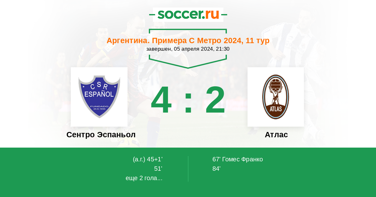 Протокол матча Сентро Эспаньол против Атлас