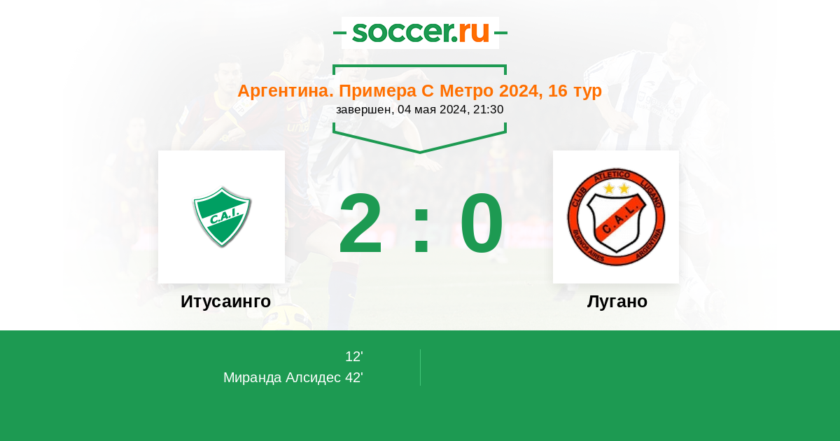 Протокол матча Итусаинго против Лугано