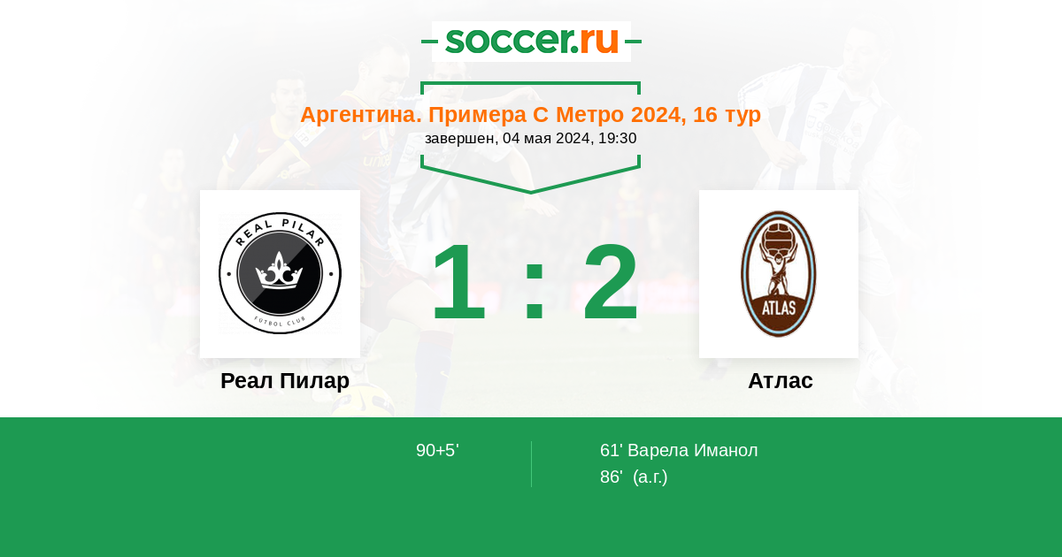 Протокол матча Реал Пилар против Атлас