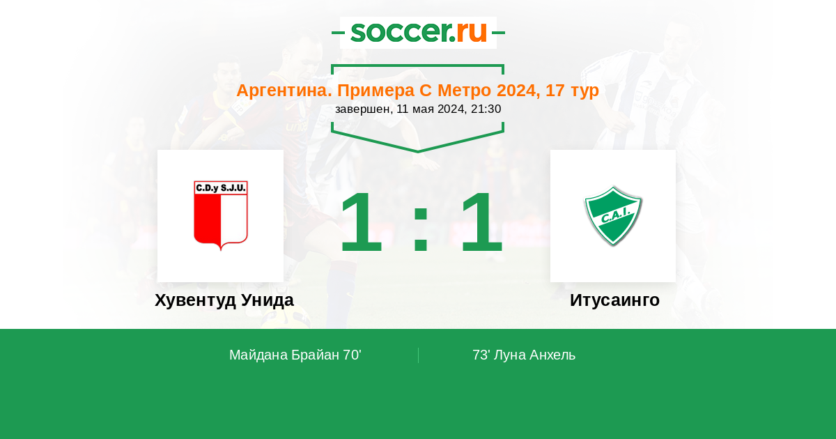 Протокол матча Хувентуд Унида против Итусаинго