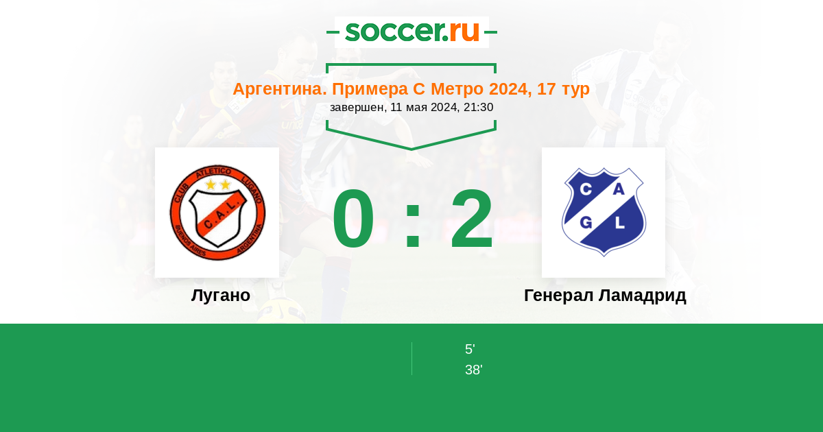 Протокол матча Лугано против Генерал Ламадрид