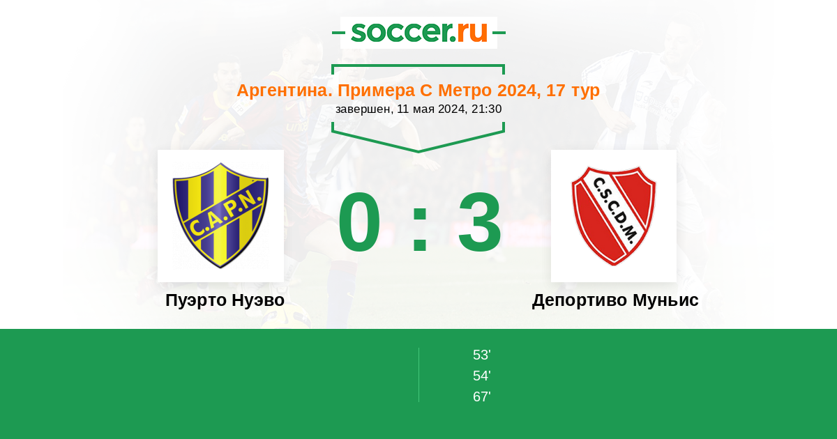 Протокол матча Пуэрто Нуэво против Депортиво Муньис