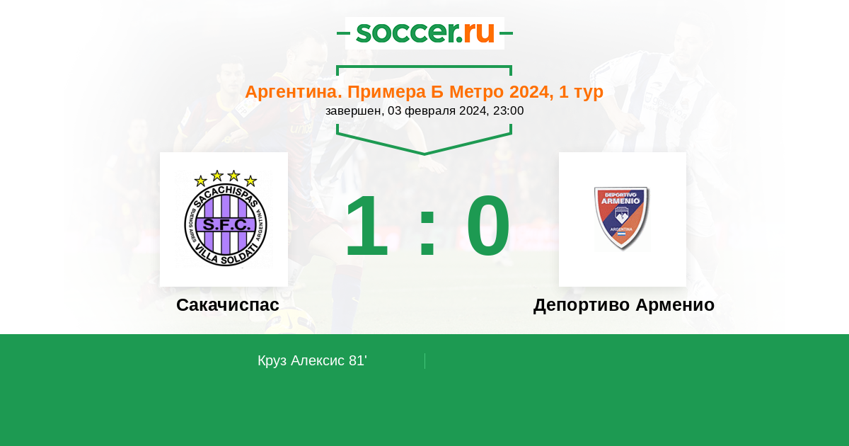 Протокол матча Сакачиспас против Депортиво Арменио