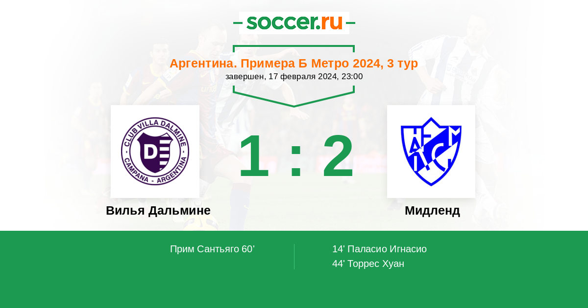 Протокол матча Вилья Дальмине против Мидленд