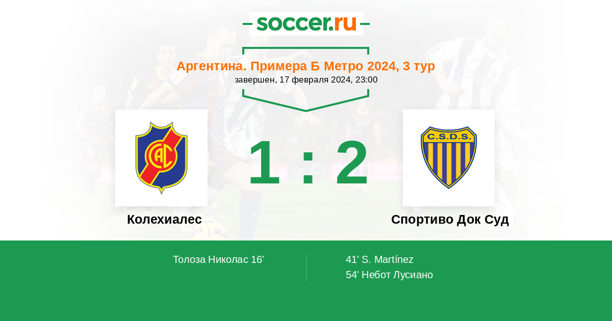 Протокол матча Колехиалес против Спортиво Док Суд