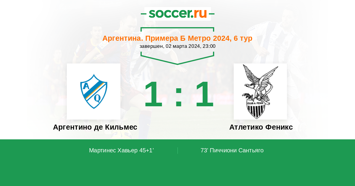 Протокол матча Аргентино де Кильмес против Атлетико Феникс