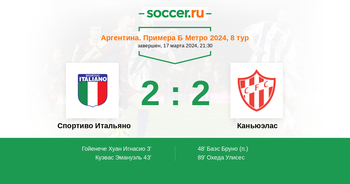 Протокол матча Спортиво Итальяно против Каньюэлас