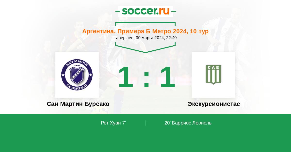 Протокол матча Сан Мартин Бурсако против Экскурсионистас