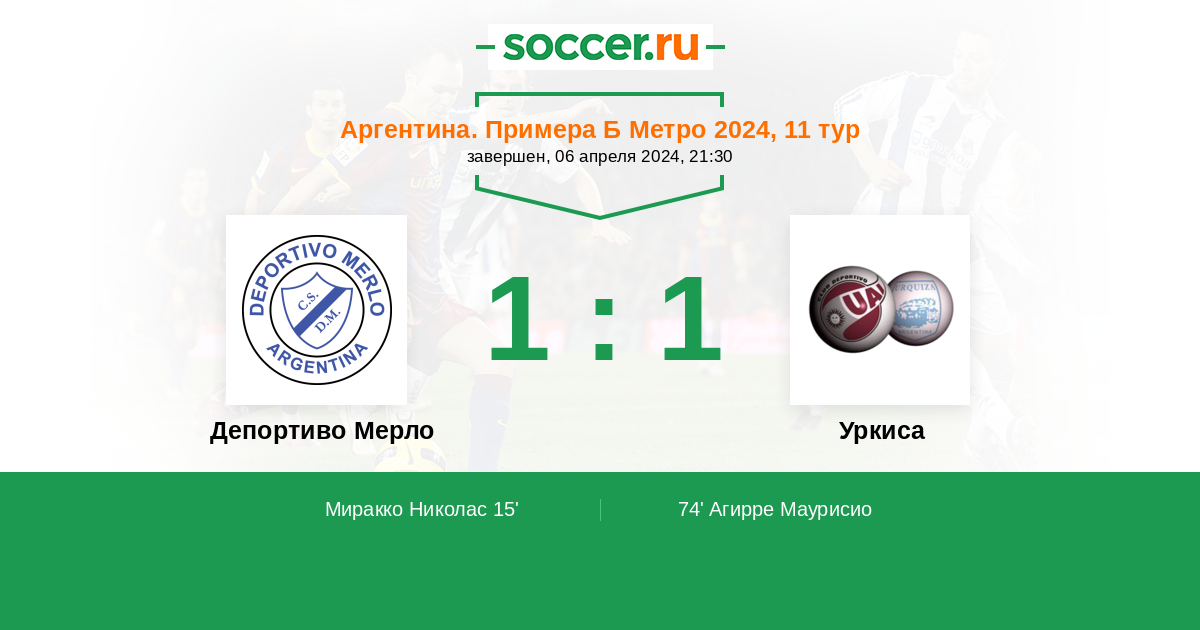 Протокол матча Депортиво Мерло против Уркиса