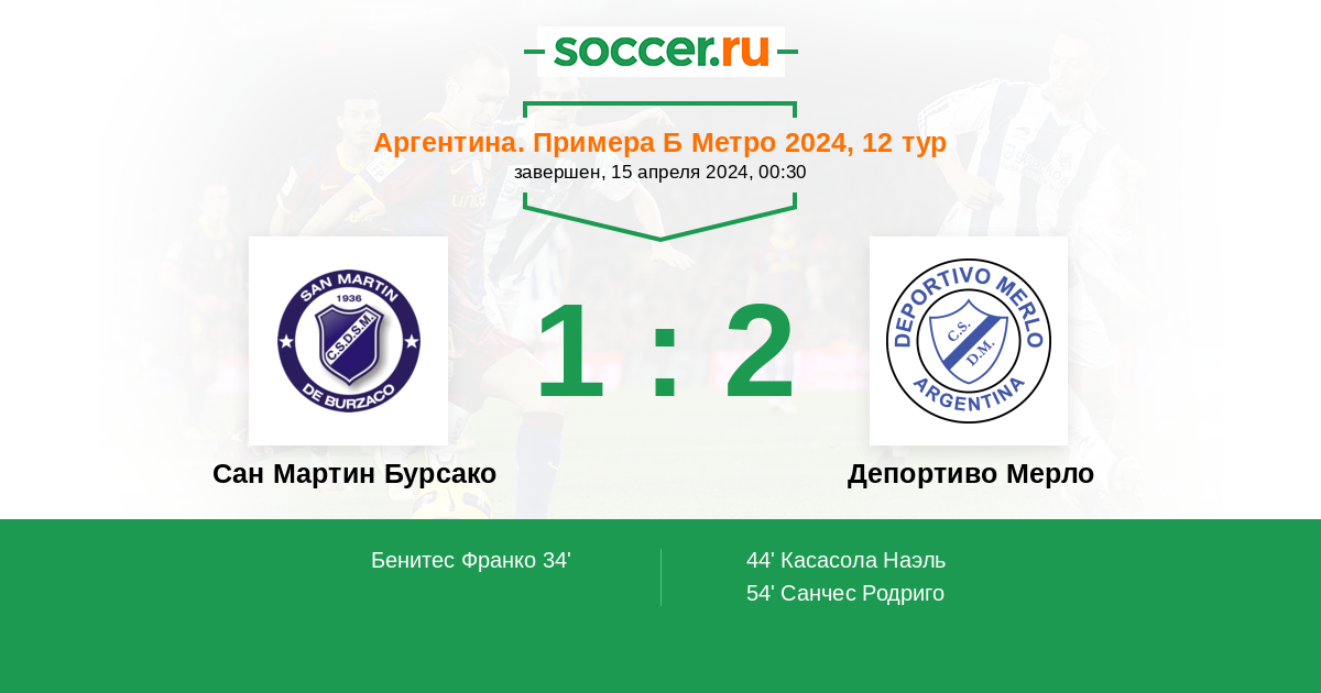 Протокол матча Сан Мартин Бурсако против Депортиво Мерло