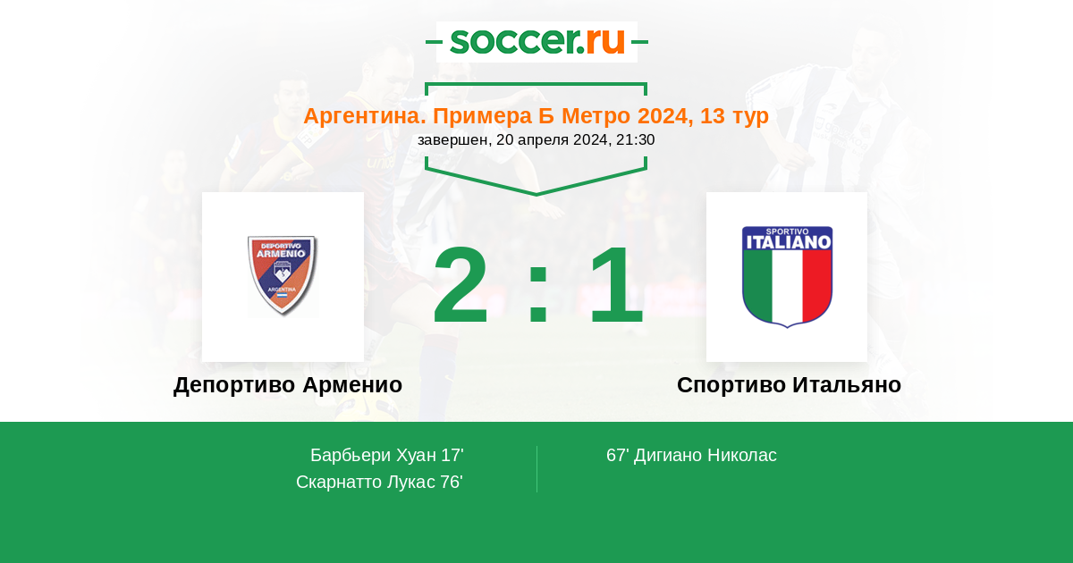 Протокол матча Депортиво Арменио против Спортиво Итальяно