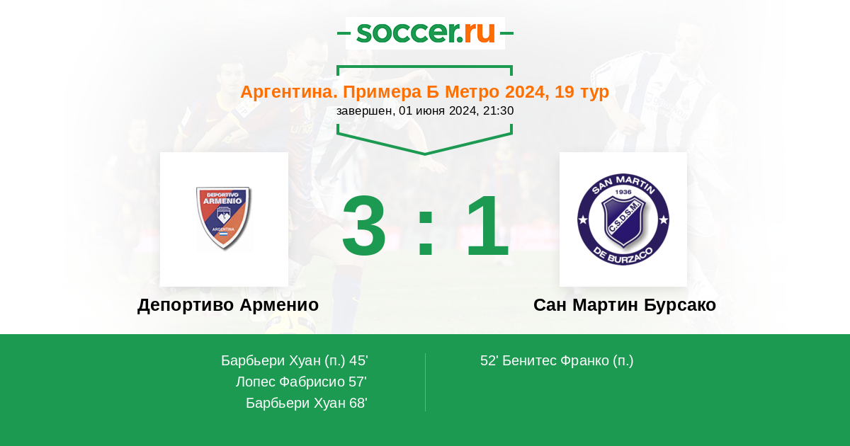 Протокол матча Депортиво Арменио против Сан Мартин Бурсако