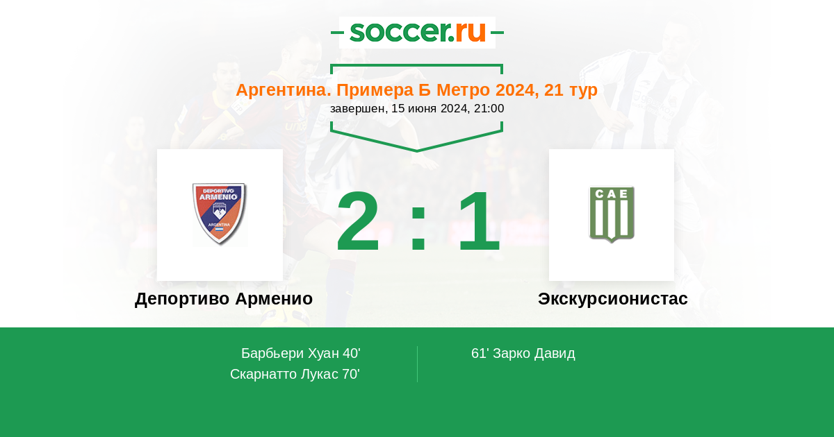 Протокол матча Депортиво Арменио против Экскурсионистас