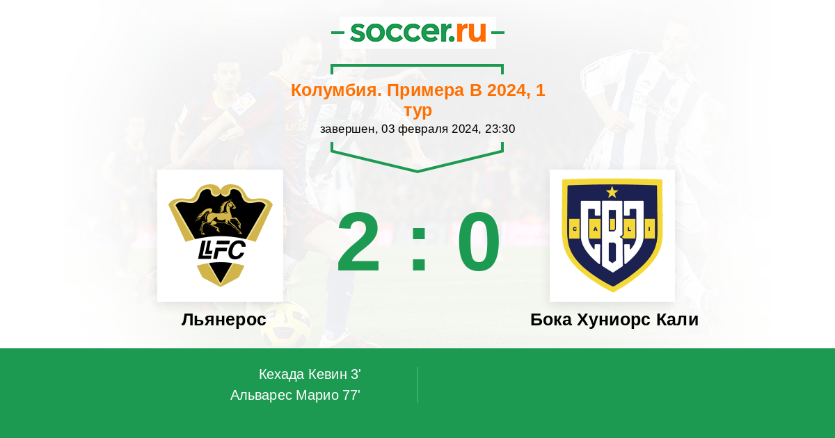 Протокол матча Льянерос против Бока Хуниорс Кали