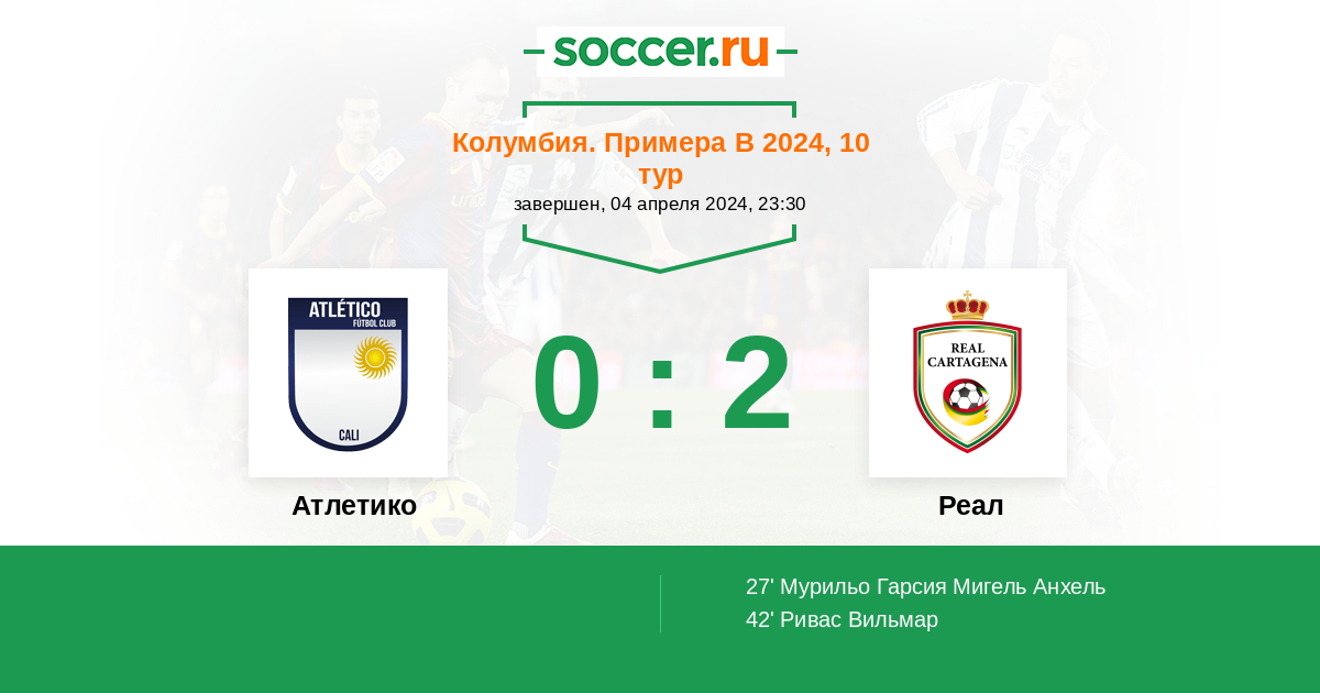 Протокол матча Атлетико Кали против Реал