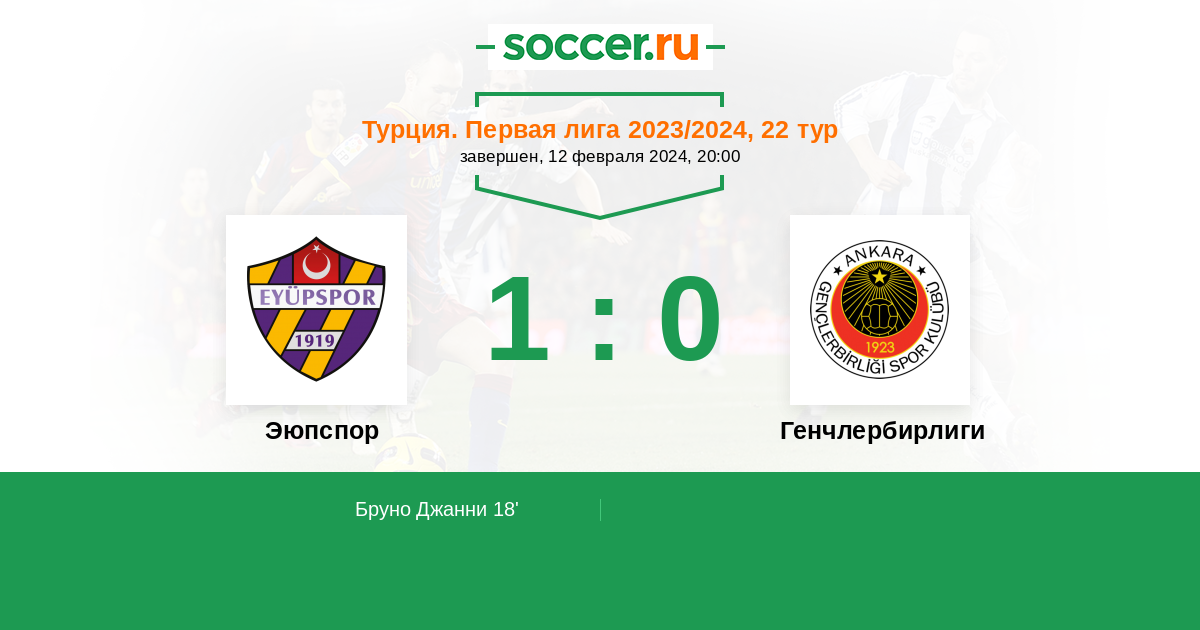 18' (1:0) Бруно Джанни (99) (Ампем Принс (40))
