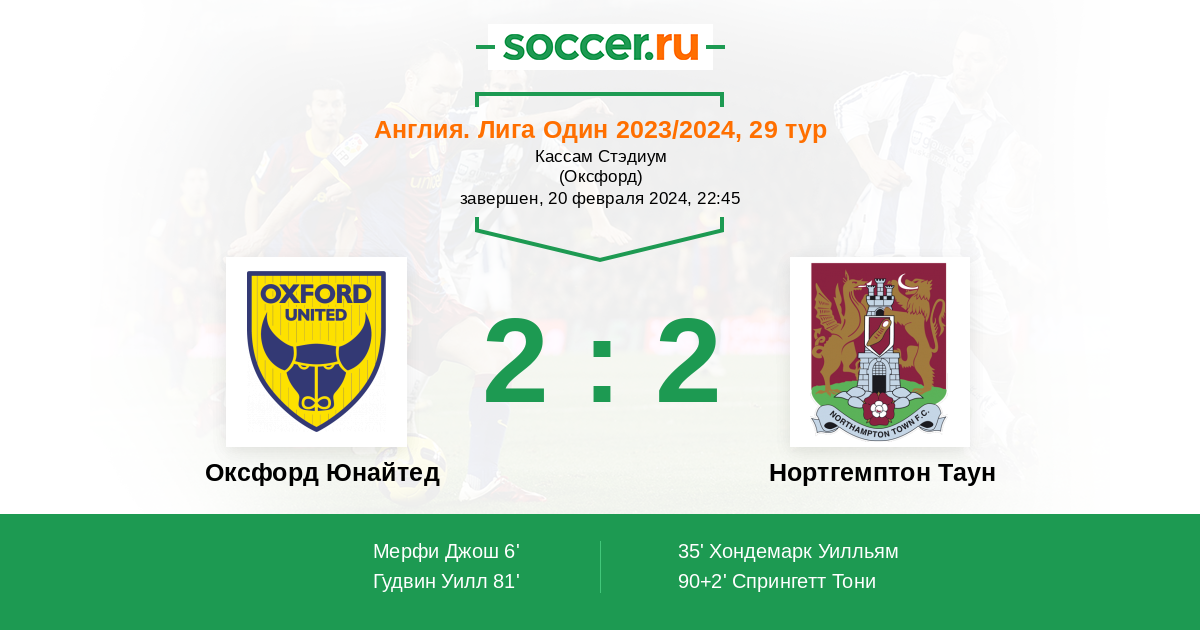 Протокол матча Оксфорд Юнайтед против Нортгемптон Таун