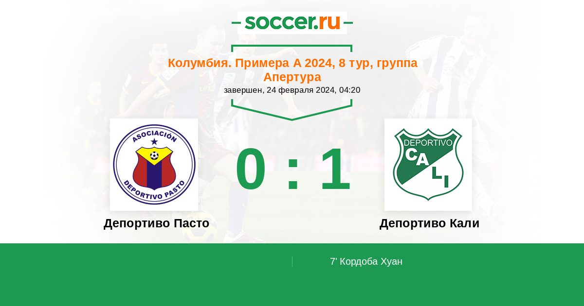 Протокол матча Депортиво Пасто против Депортиво Кали