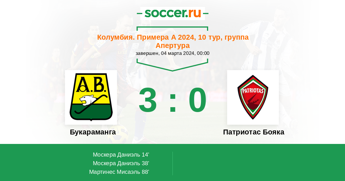 Протокол матча Букараманга против Патриотас Бояка