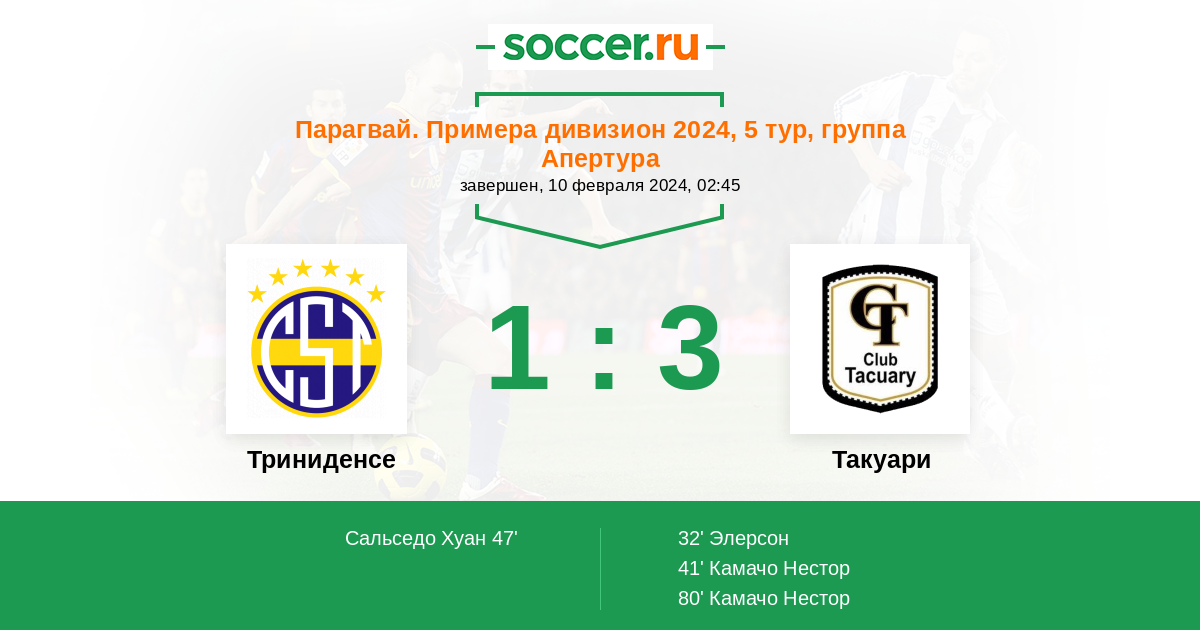 32' (0:1) Элерсон (30) (Камачо Нестор (7))