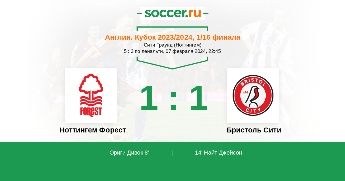 Протокол матча Ноттингем Форест против Бристоль Сити