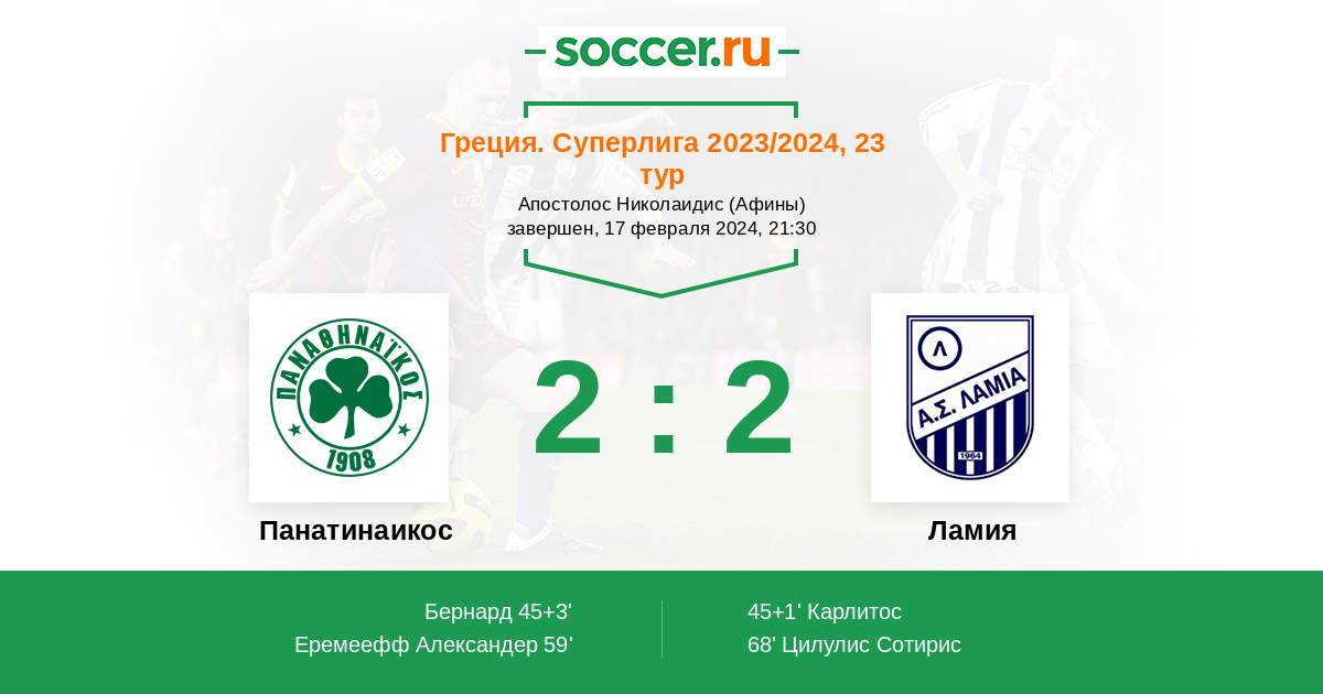 Протокол матча Панатинаикос против Ламия