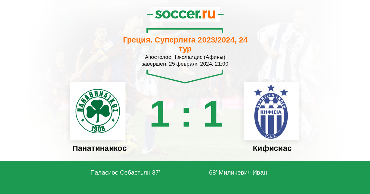 37' (1:0) Паласиос Себастьян (34) (Ионнидис Фотис (7))
