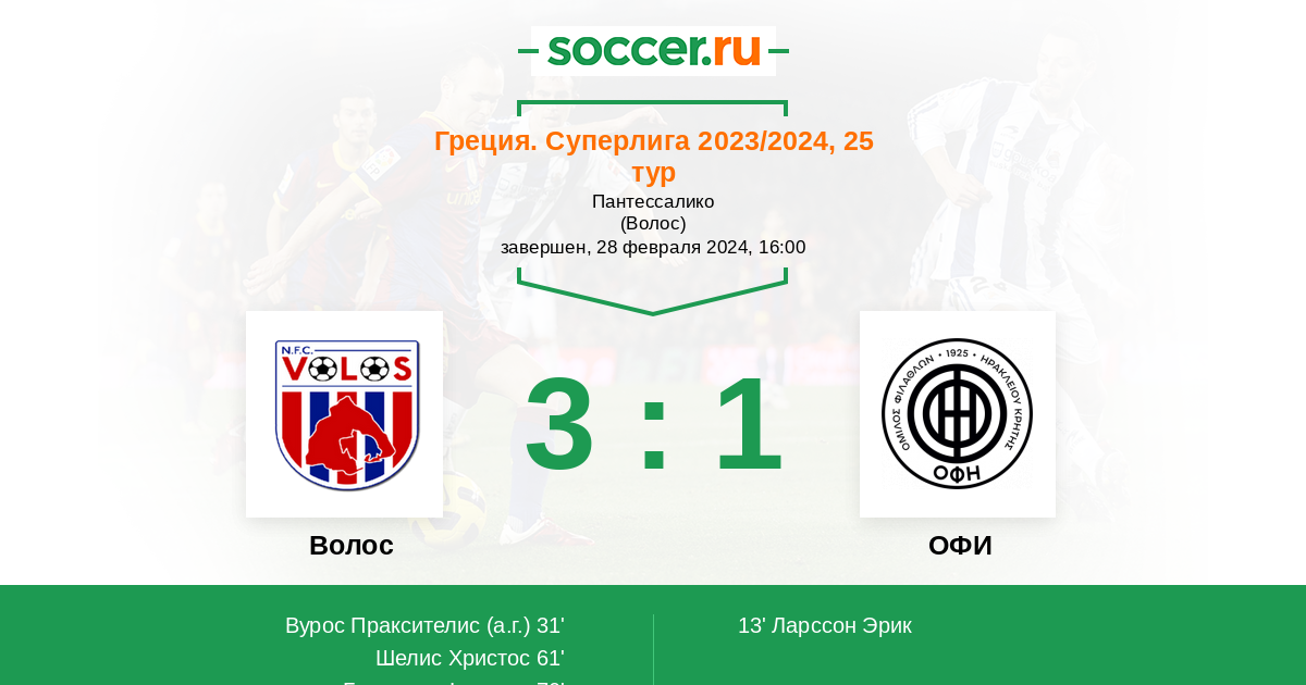 Протокол матча Волос против ОФИ
