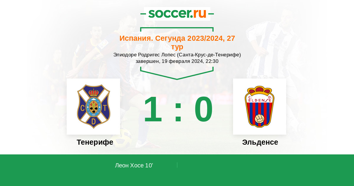 Тенерифе - Эльденсе ! Команды " звёзд с неба не хватают " . Располагаются в середине таблице , ближе к низу . Скорее всего особо рисковать не будут и "распишут " ничью .