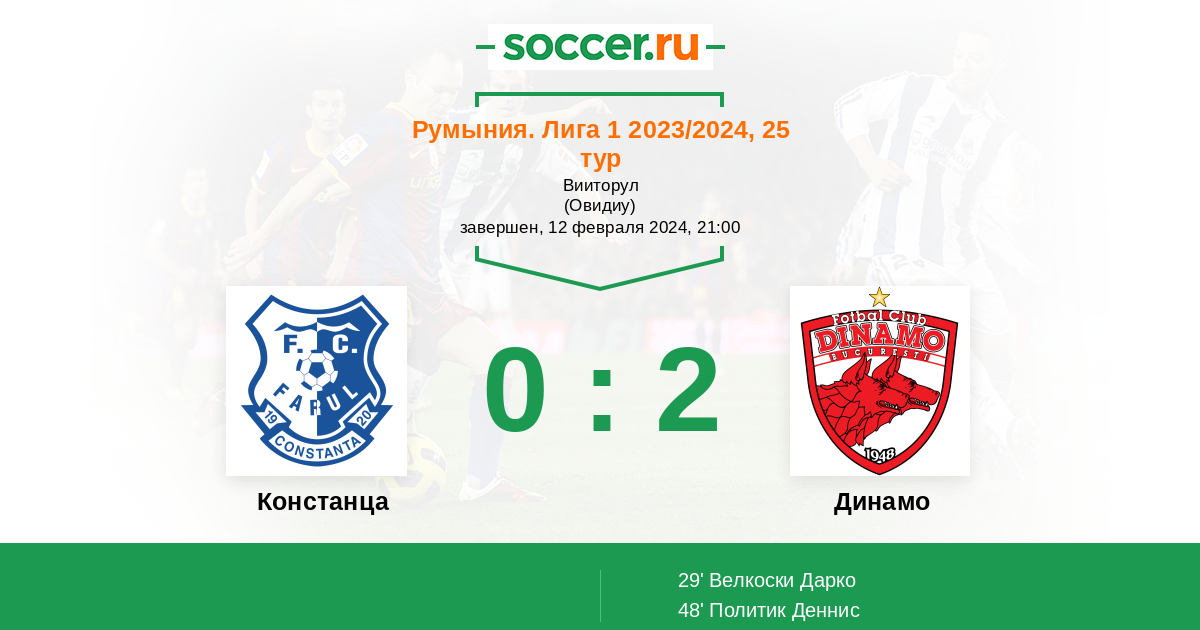 Протокол матча Фарул против Динамо