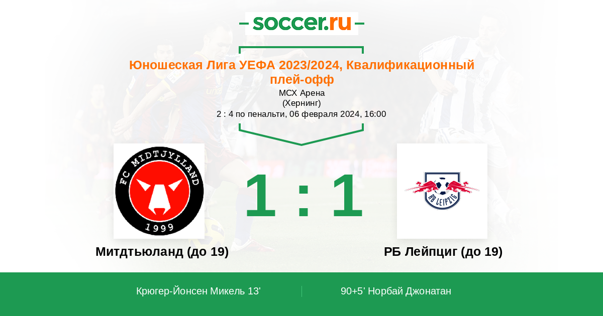 Протокол матча Митдтьюланд (до 19) против РБ Лейпциг (до 19)