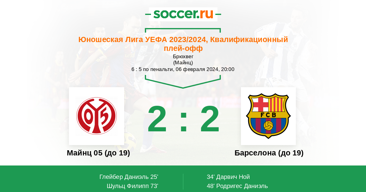 Протокол матча Майнц 05 (до 19) против Барселона (до 19)
