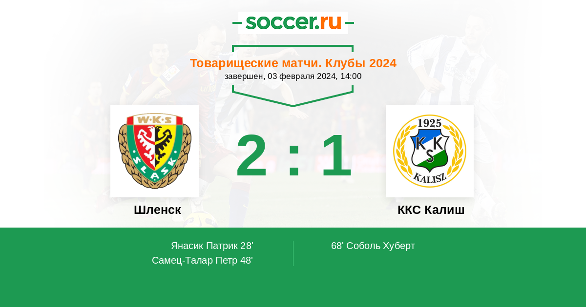 Протокол матча Шленск против ККС Калиш
