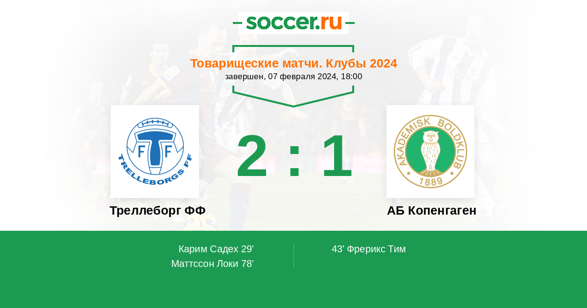 Протокол матча Треллеборг ФФ против АБ Копенгаген