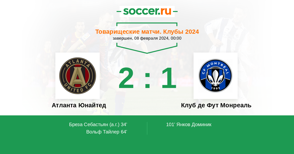 Протокол матча Атланта Юнайтед против Клуб де Фут Монреаль