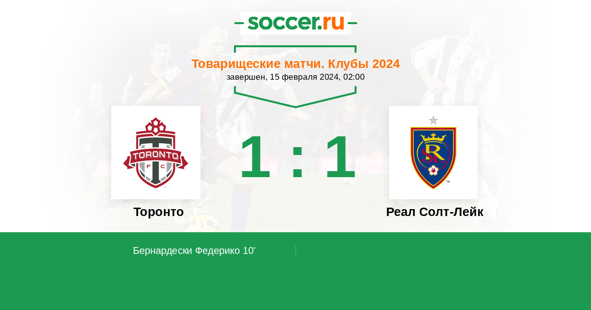 Протокол матча Торонто против Реал Солт-Лейк