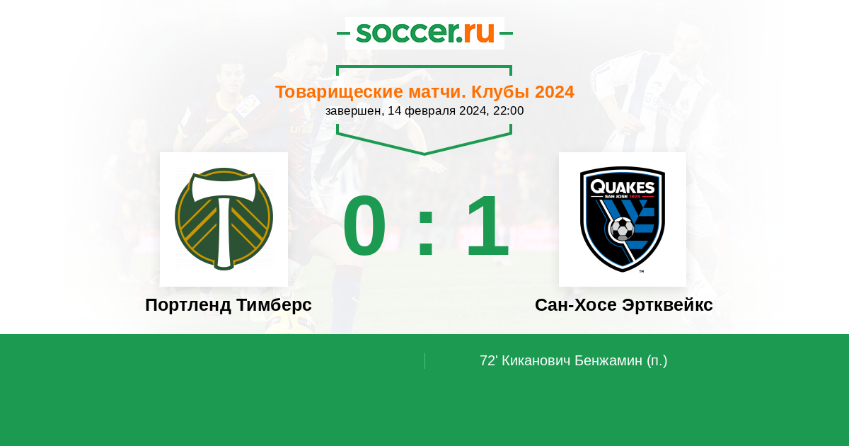 Протокол матча Портленд Тимберс против Сан-Хосе Эртквейкс