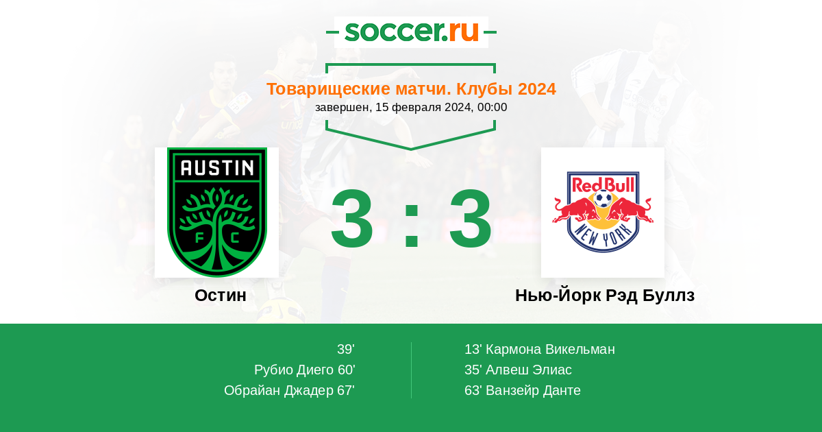 Протокол матча Остин против Нью-Йорк Рэд Буллз