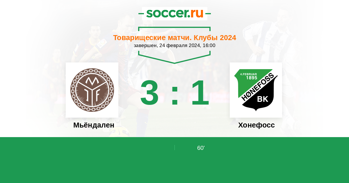 Протокол матча Мьёндален против Хонефосс