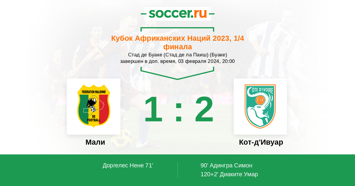 Протокол матча Мали против Кот-д'Ивуар