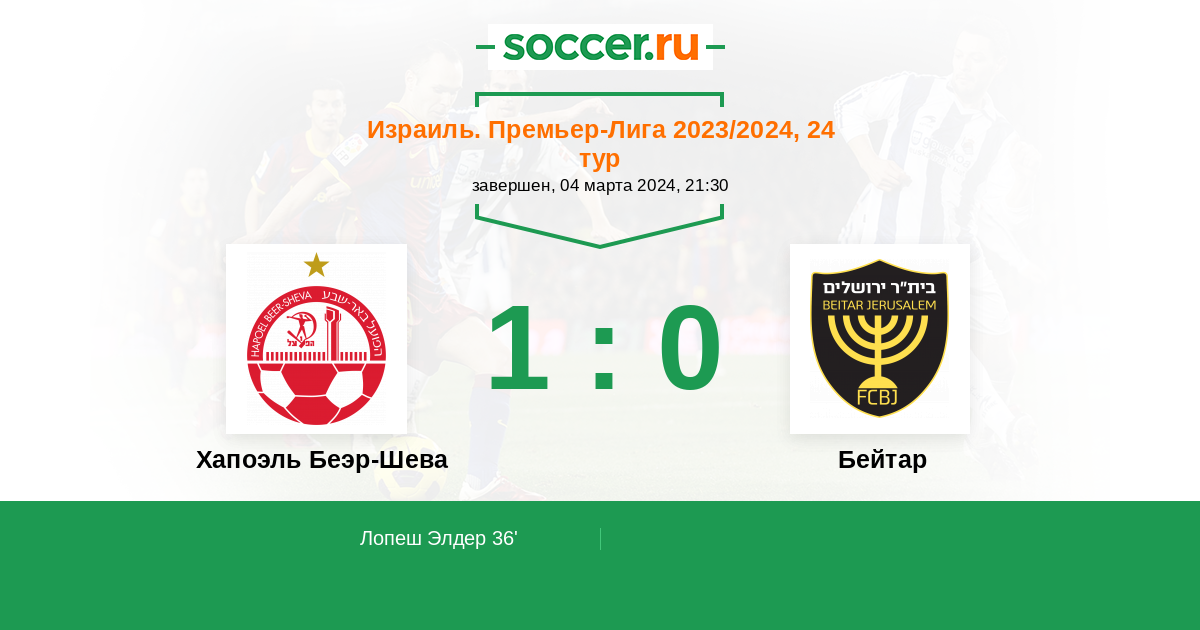 Протокол матча Хапоэль Беэр-Шева против Бейтар