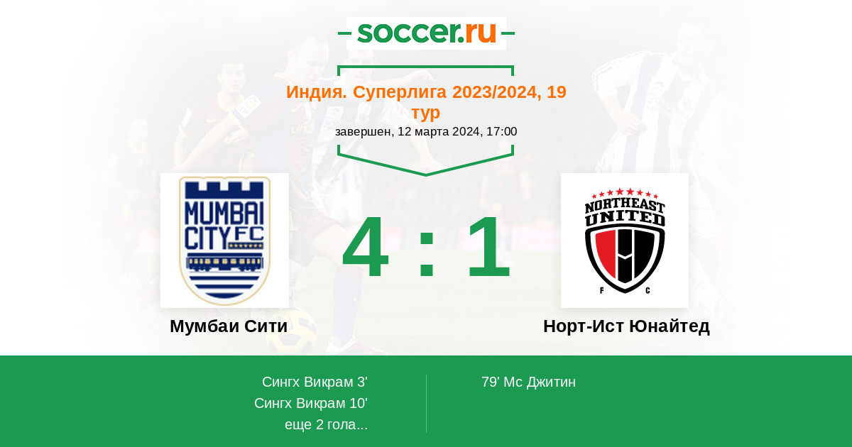 Протокол матча Мумбаи Сити против Норт-Ист Юнайтед