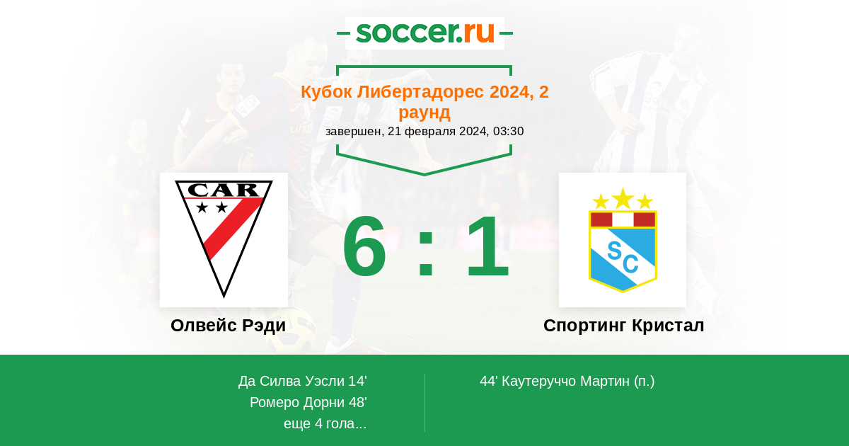 Протокол матча Олвейс Рэди против Спортинг Кристал