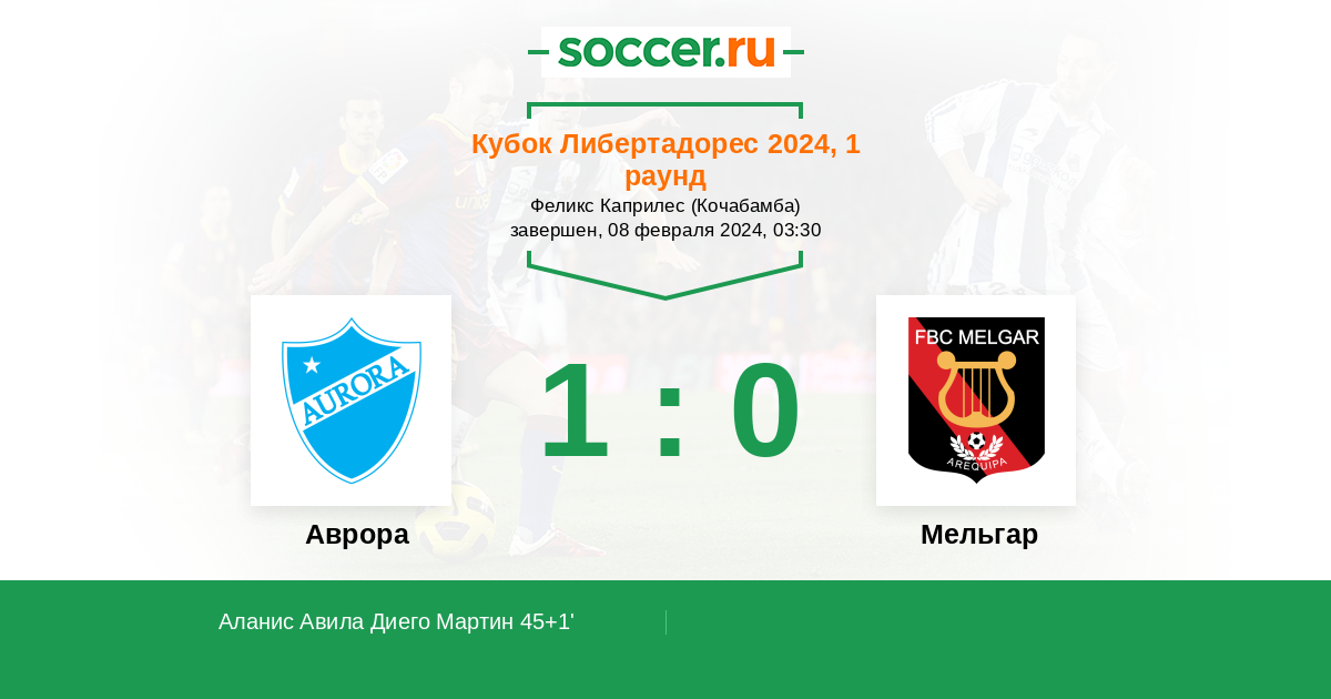 Протокол матча Аврора против Мельгар