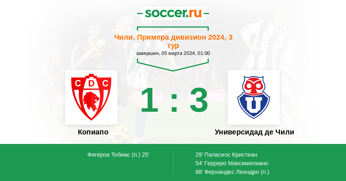 Протокол матча Копиапо против Универсидад де Чили
