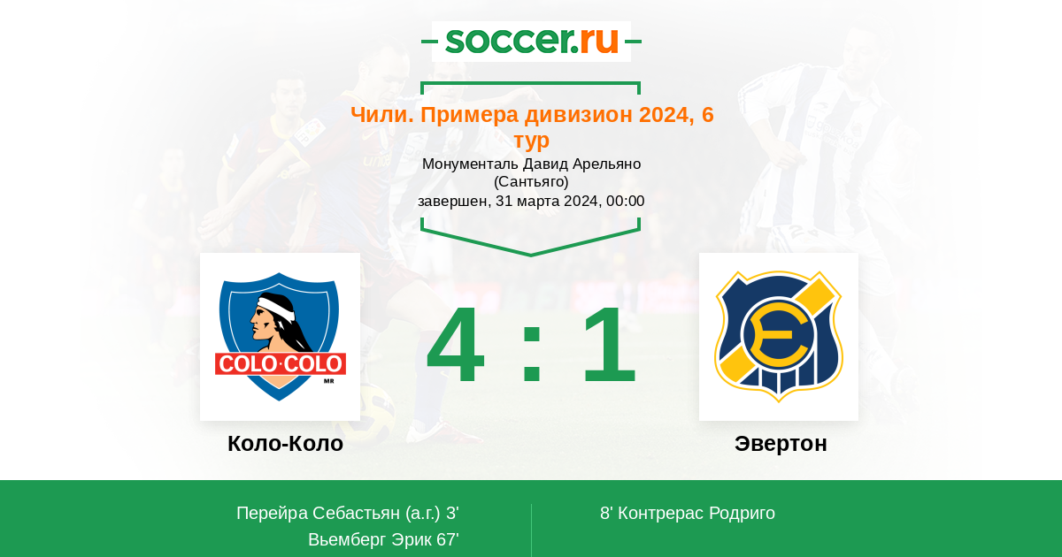 Протокол матча Коло-Коло против Эвертон