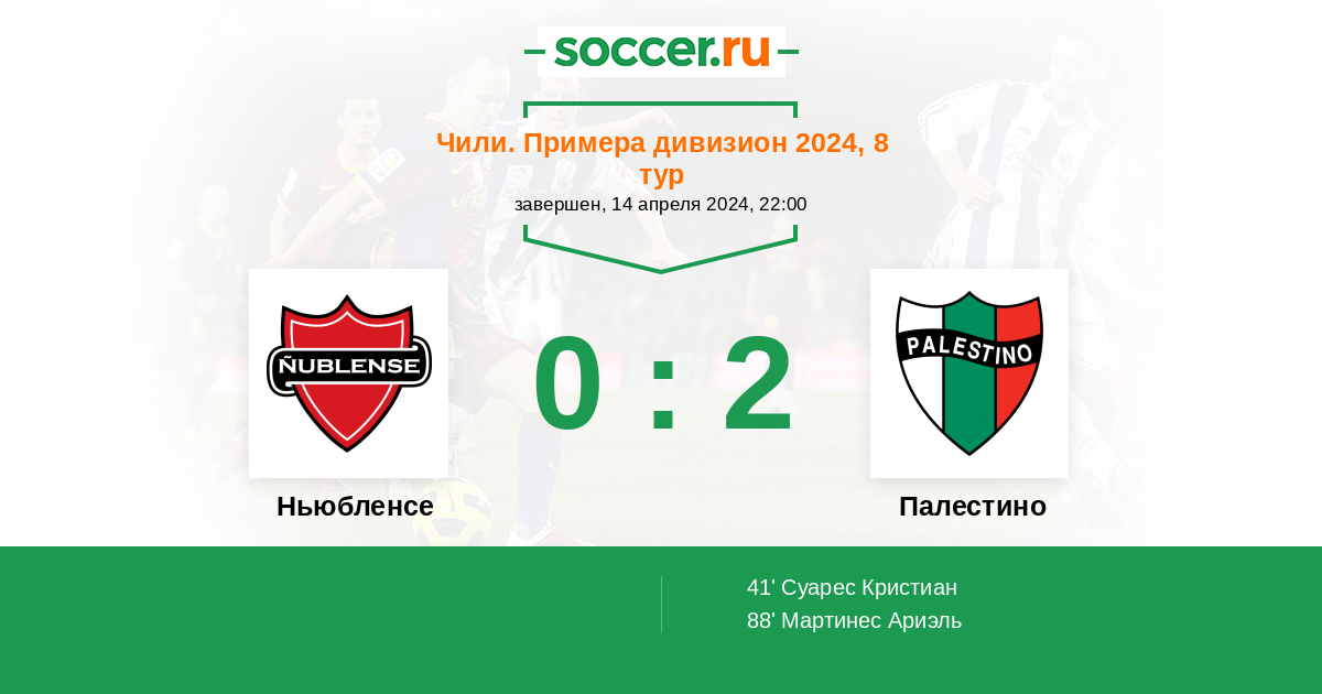 41' (0:1) Суарес Кристиан (13) (Мартинес Ариэль (23))