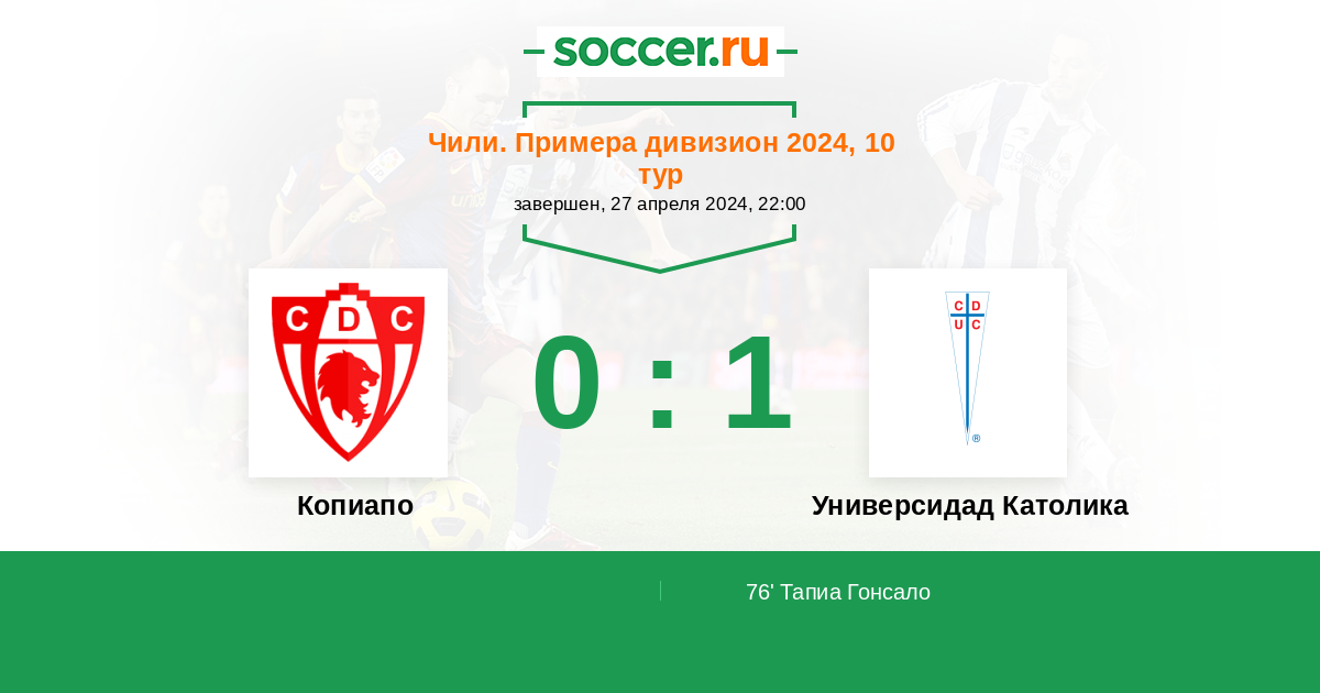 76' (0:1) Тапиа Гонсало (20) (Сампедри Фернандо (9))